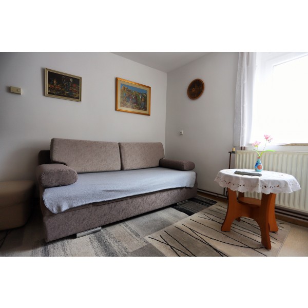 Apartma z 1 spalnico in z zasebnim vhodom vključuje 1 dnevno sobo (pomožno ležišče na sedežni garnituru), 1 ločeno spalnico in 1 kopalnico s tušem in sušilcem za lase. V popolnoma opremljeni kuhinji boste našli kuhalno ploščo, hladilnik, pomivalni stroj in kuhinjsko posodo. Apartma ima tudi žar. Apartma s teraso s pogledom na vrt ponuja tudi pralni stroj in kabelsko televizijo z ravnim zaslonom. Enota ima 2 postelji in pomožno ležišče za 2 osebi na raztegljivi sedežni garnituri.